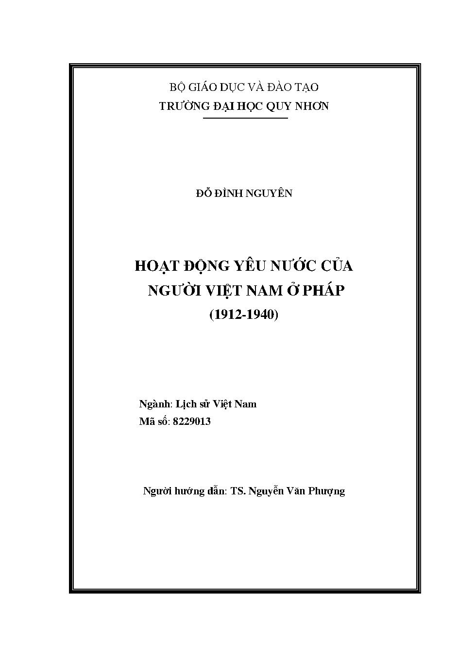 Hoạt động yêu nước của người Việt Nam ở Pháp (1912 - 1940)