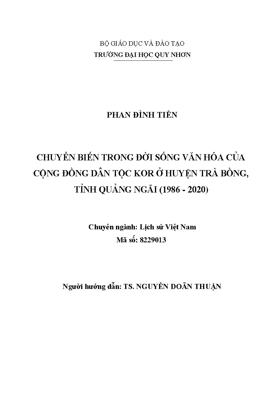 Chuyển biến trong đời sống văn hóa của cộng đồng dân tộc Kor ở huyện Trà Bồng, tỉnh Quảng Ngãi (1986-2020)