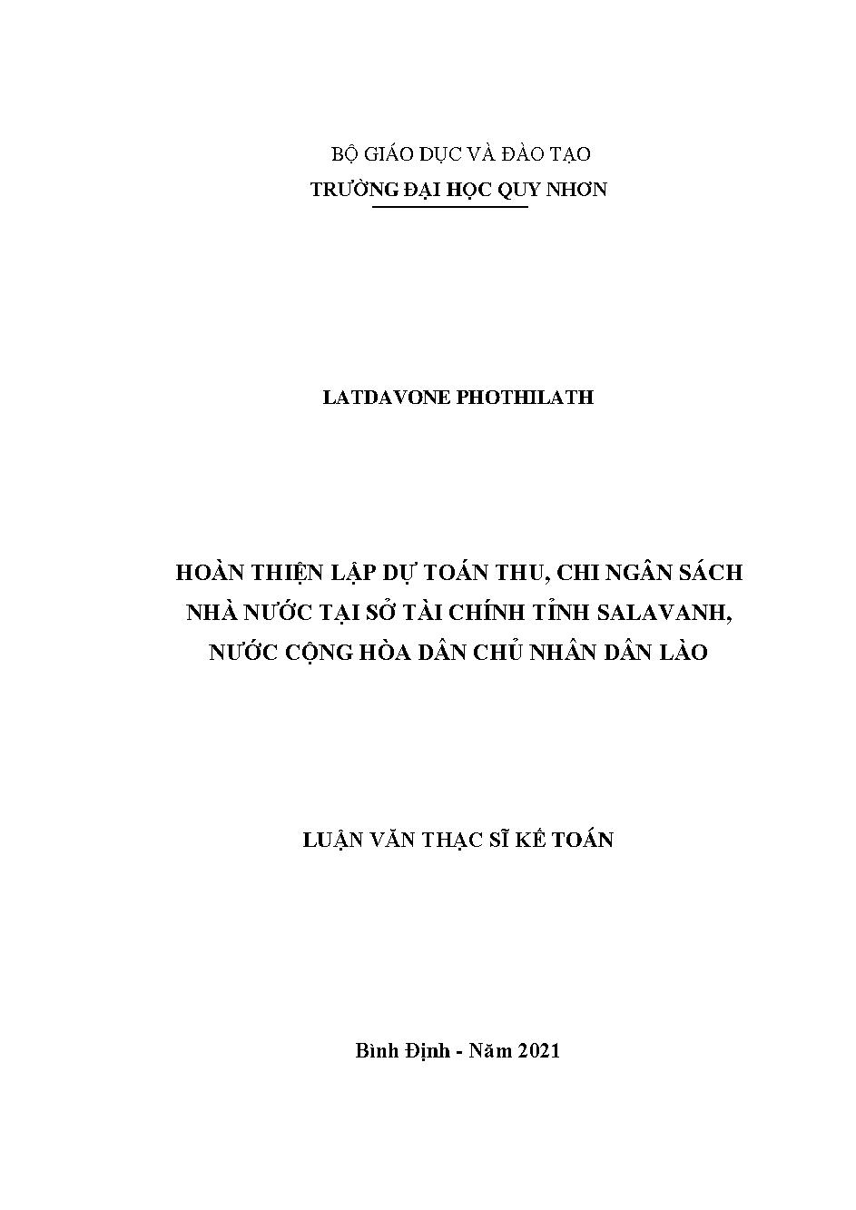 Hoàn thiện lập dự toán thu, chi ngân sách nhà nước tại Sở Tài chính, tỉnh Salavanh, nước Cộng hòa dân chủ nhân dân Lào
