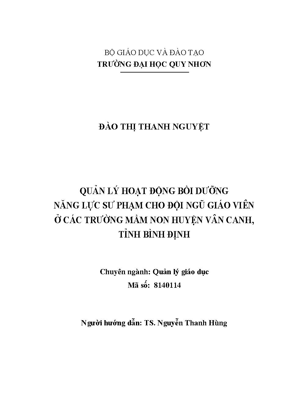 Quản lý hoạt động dạy học môn Ngữ văn theo hướng phát triển năng lực học sinh ở các trường Trung học cơ sở thị xã An Khê, tỉnh Gia Lai