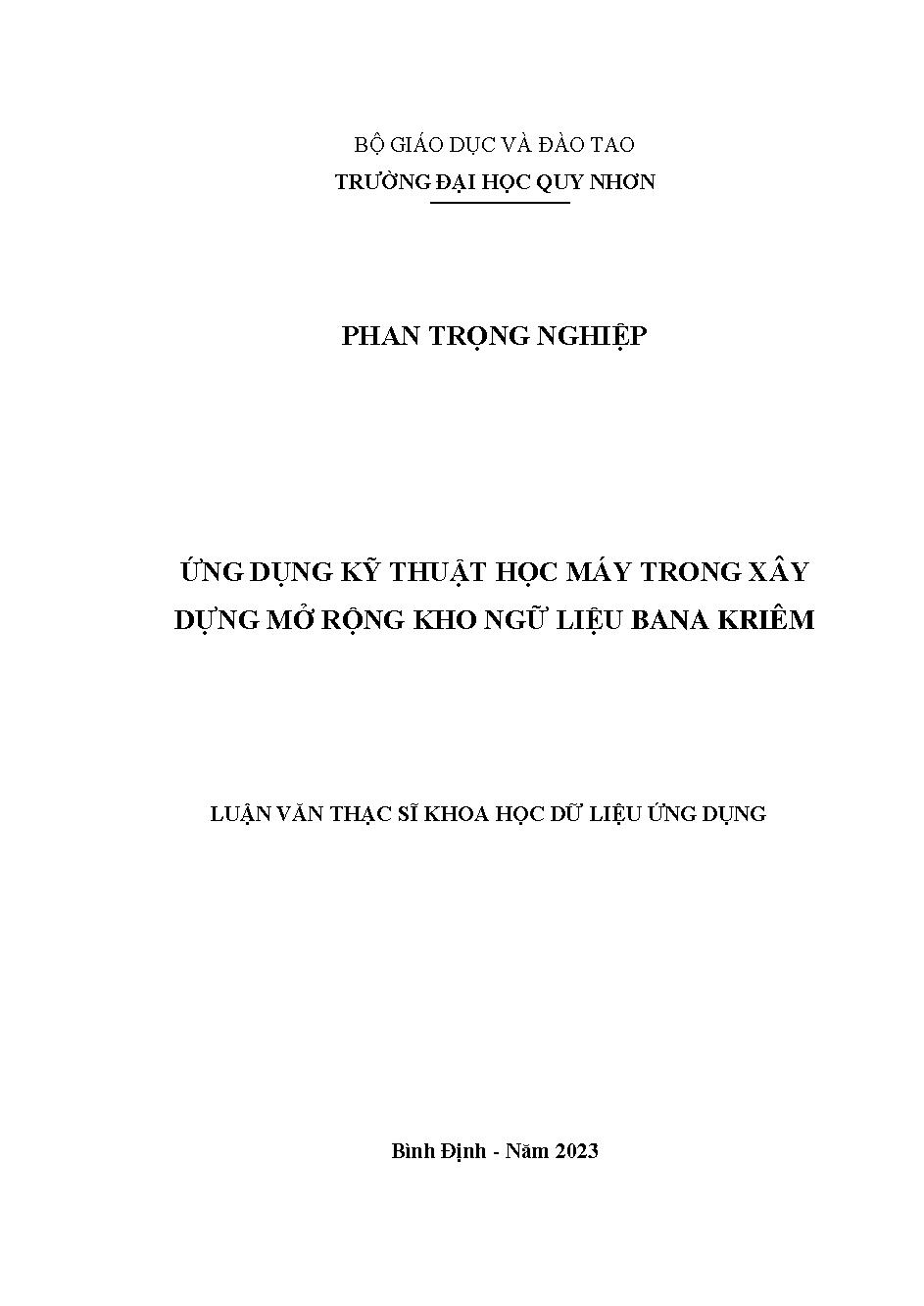 Ứng dụng kỹ thuật học máy trong xây dựng mở rộng kho ngữ liệu Bana Kriêm
