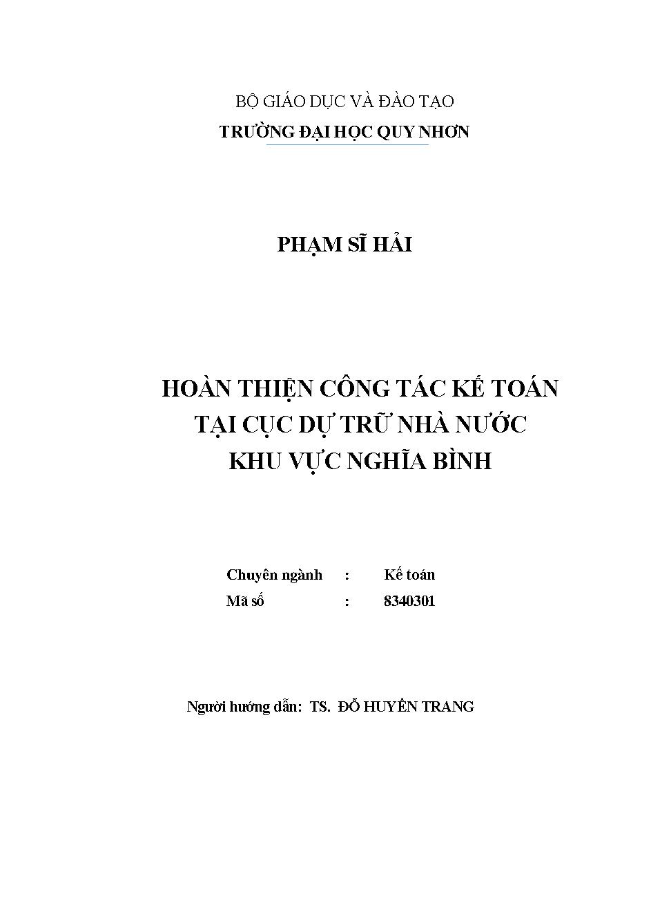 Hoàn thiện công tác kế toán tại Cục Dự trữ Nhà nước khu vực Nghĩa Bình