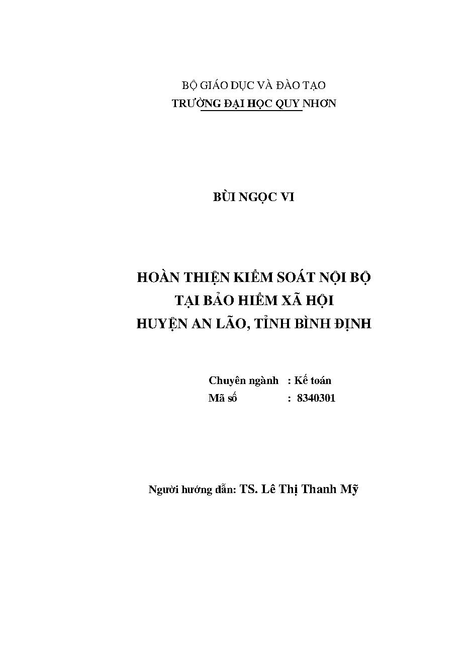 Hoàn thiện kiểm soát nội bộ tại Bảo hiểm xã hội huyện An Lão, tỉnh Bình Định