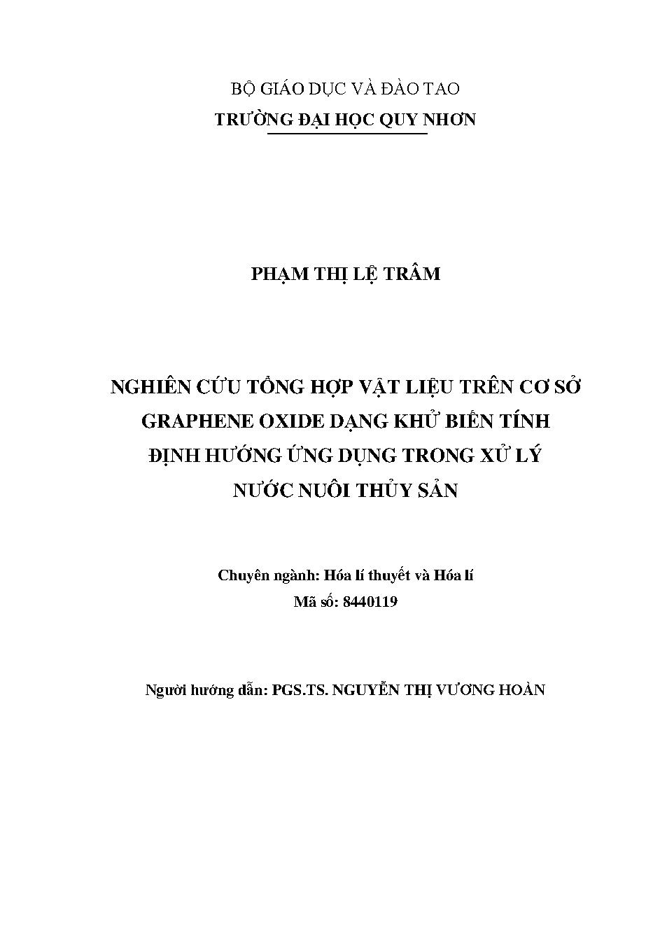 Nghiên cứu tổng hợp vật liệu trên cơ sở graphene oxide dạng khử biến tính định hướng ứng dụng trong xử lý nước nuôi thủy sản
