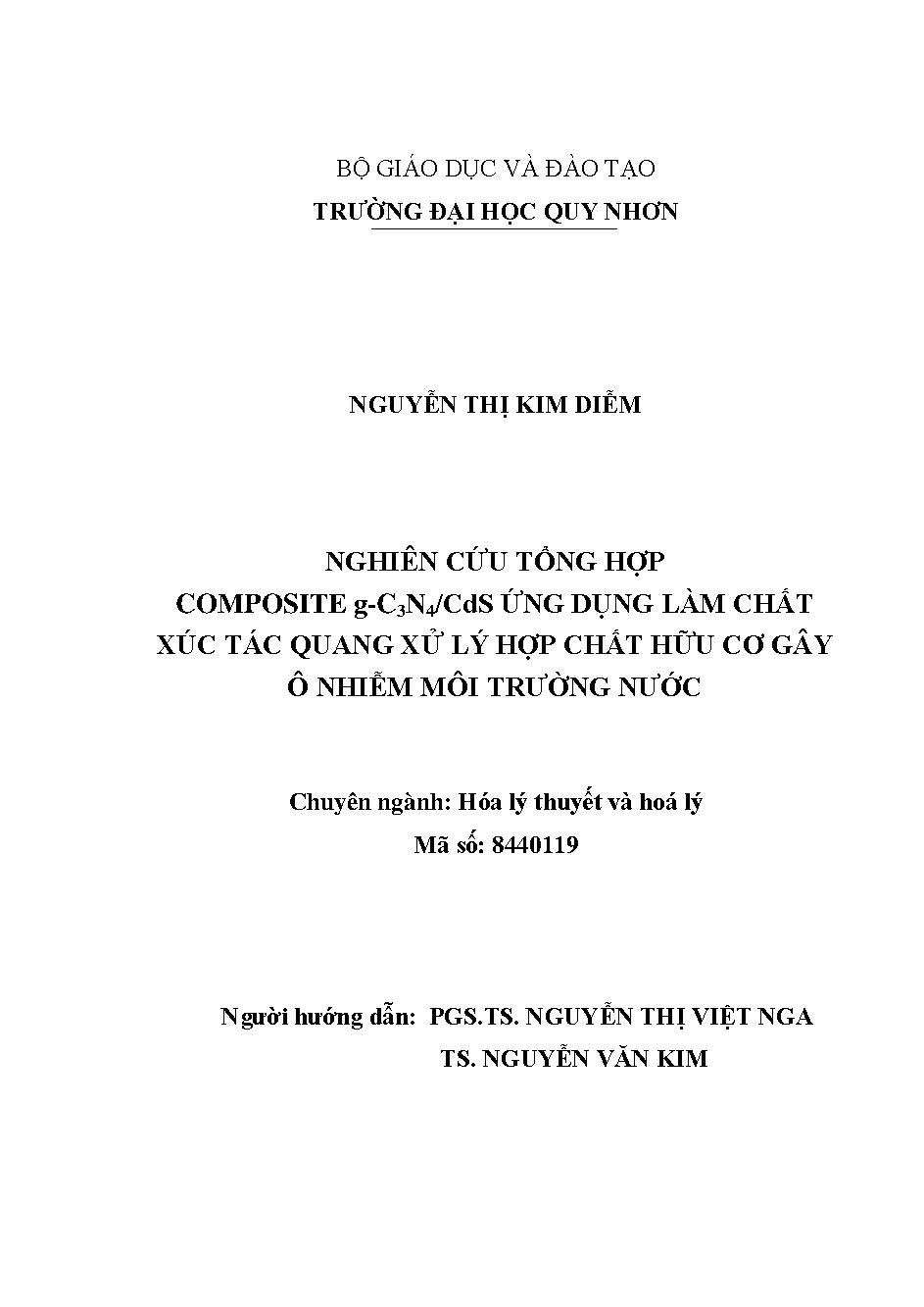 Nghiên cứu tổng hợp composite g-C3N4/CdS ứng dụng làm chất xúc tác quang xử lý hợp chất hữu cơ gây ô nhiễm môi trường nước