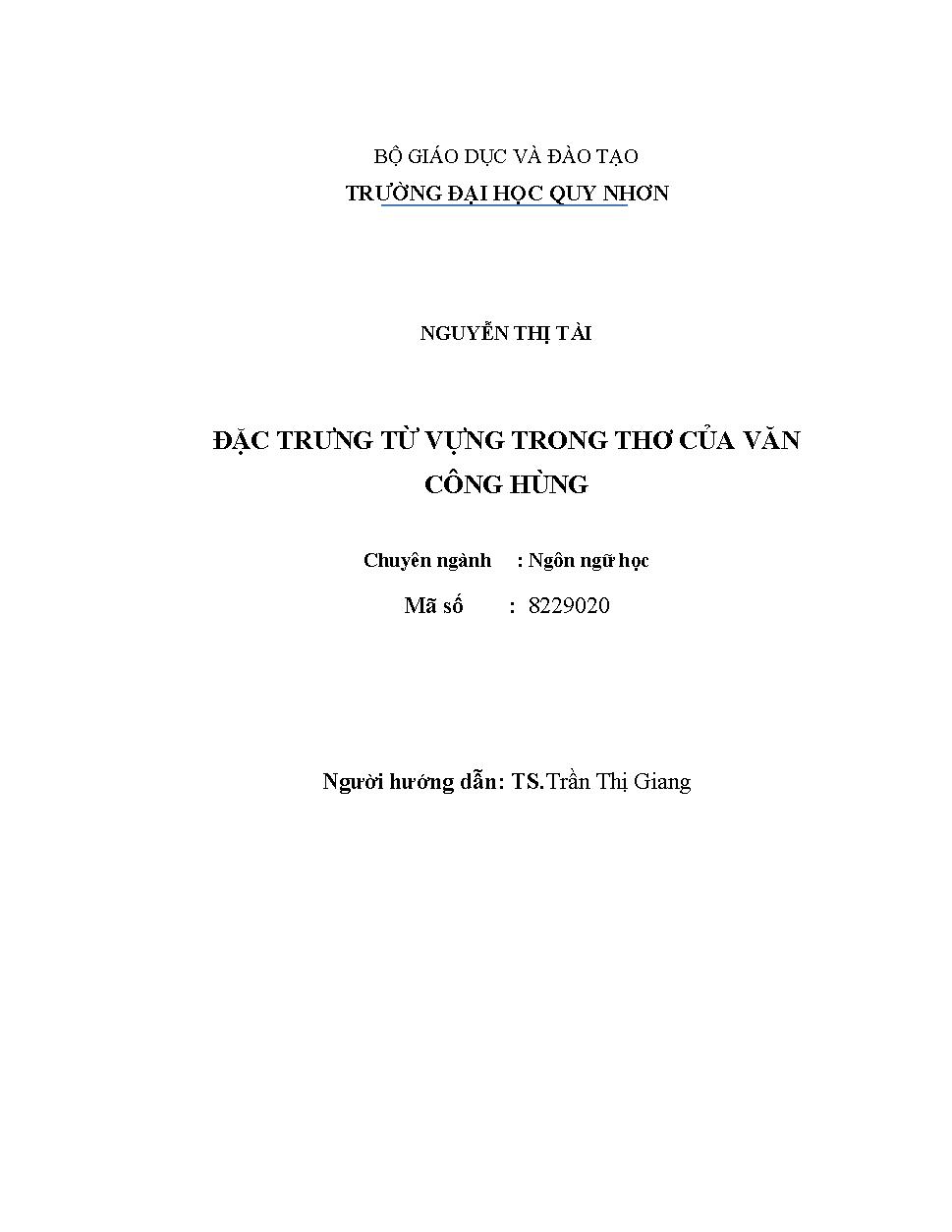 Đặc điểm từ vựng trong thơ của Văn Công Hùng