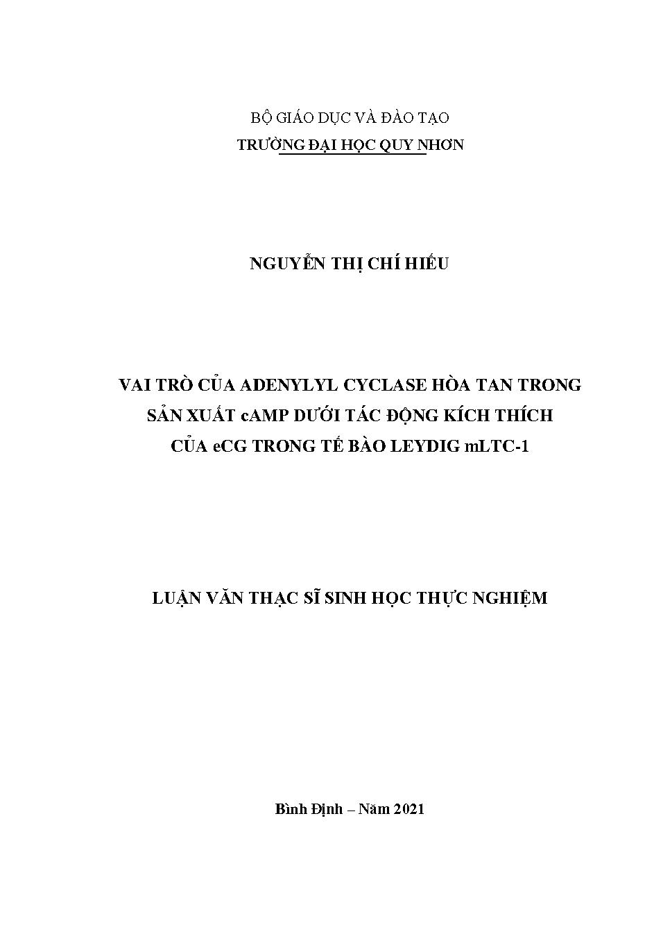 Vai trò của Adenylyl cyclase hòa tan trong sản xuất cAMP dưới tác động kích thích của eCG trong tế bào Leydig mLTC-1