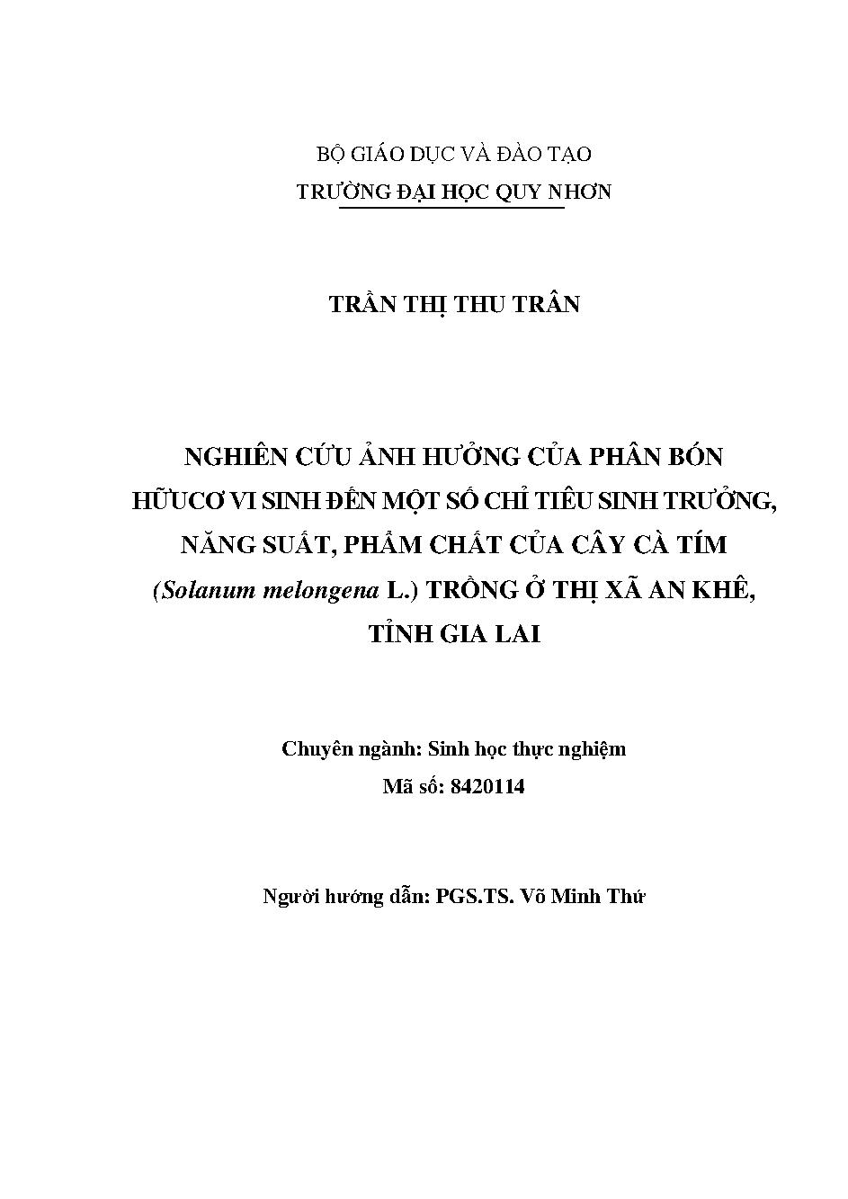Nghiên cứu ảnh hưởng của phân bón hữu cơ vi sinh đến một số chỉ tiêu sinh trưởng, năng suất, phẩm chất của cây cà tím (Solanum melongena L.) trồng tại thị xã An Khê, tỉnh Gia Lai
