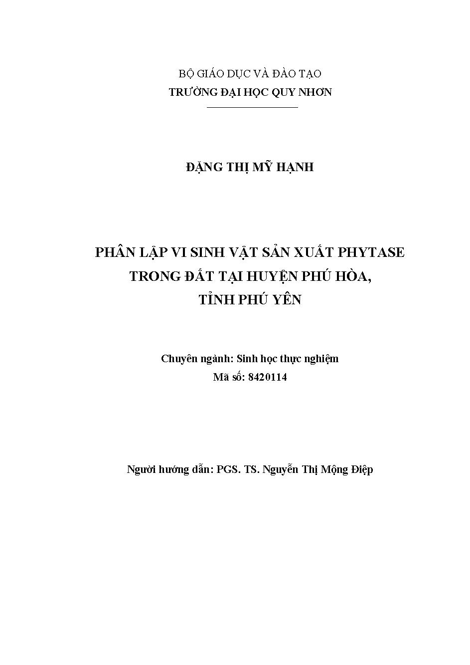 Phân lập vi sinh vật sản xuất phytase trong đất tại huyện Phú Hòa, tỉnh Phú Yên