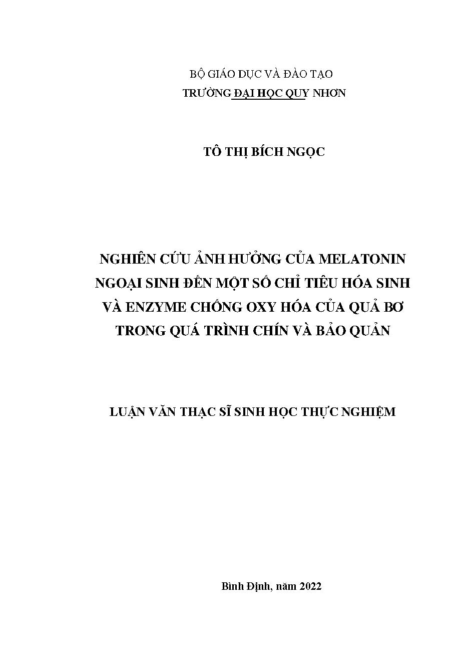 Nghiên cứu ảnh hưởng của melatonin ngoại sinh đến một số chỉ tiêu hóa sinh và enzyme chống oxy hóa của quả bơ trong quá trình chín và bảo quản