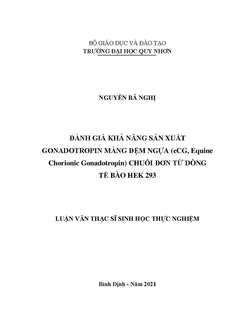 Đánh giá khả năng sản xuất gonadotropin màng đệm ngựa (eCG, equine chorionic gonadotropin) chuỗi đơn từ dòng tế bào HEK 293