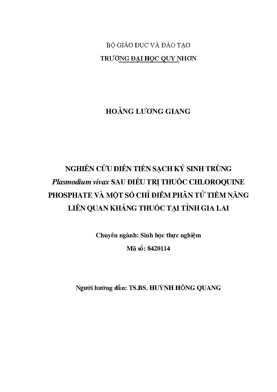 Nghiên cứu diễn tiến sạch ký sinh trùng Plasmodium vivax sau điều trị thuốc chloroquine phosphate và một số chỉ điểm phân tử tiềm năng liên quan kháng thuốc tại tỉnh Gia Lai