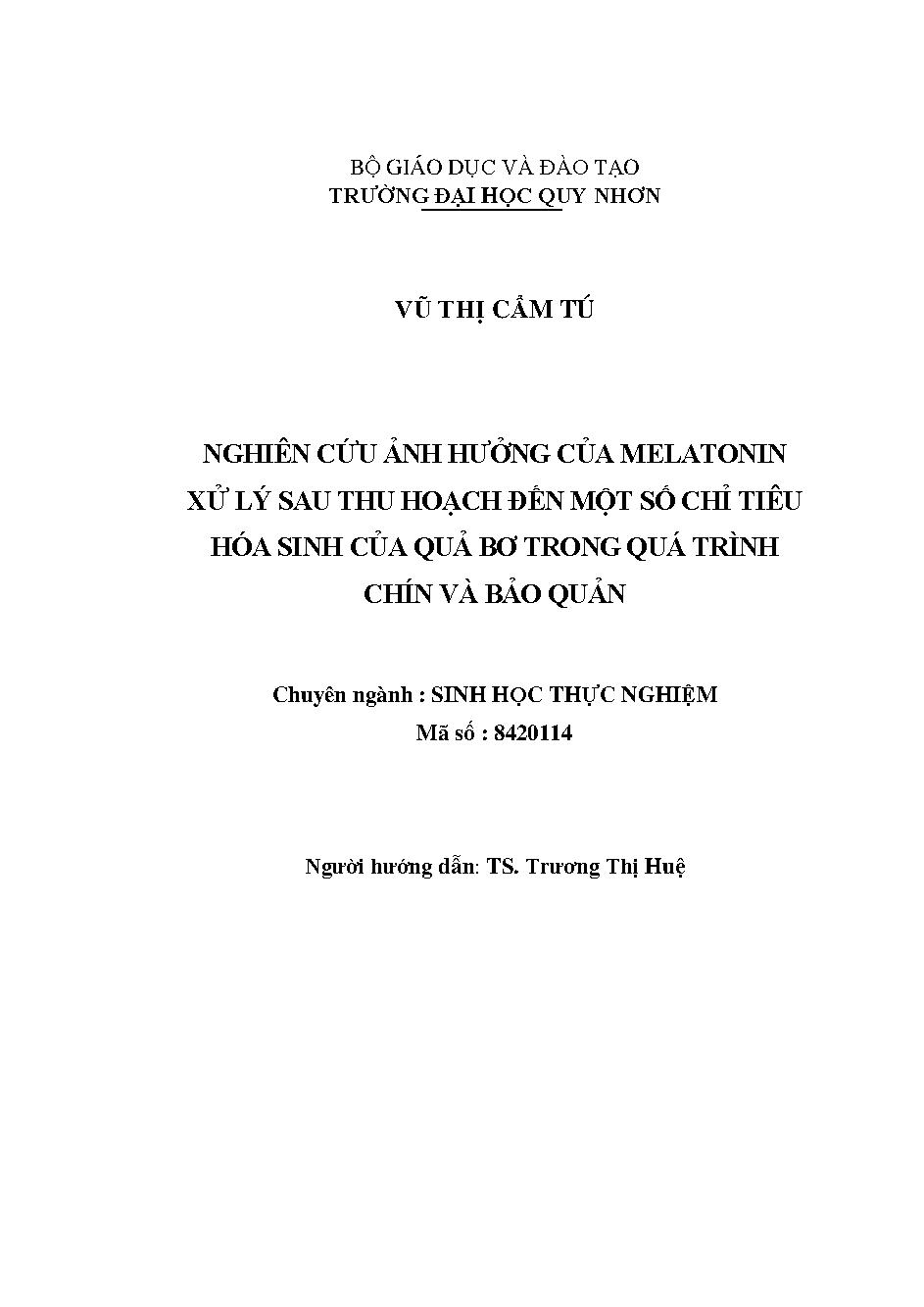 Nghiên cứu ảnh hưởng của Melatonin xử lý sau thu hoạch đến một số chỉ tiêu hoá sinh của quả bơ trong quá trình chín và bảo quản