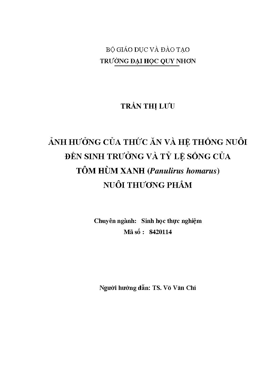 Ảnh hưởng của thức ăn và hệ thống nuôi đến sinh trưởng và tỷ lệ sống của tôm hùm xanh (Panulirus homarus) nuôi thương phẩm