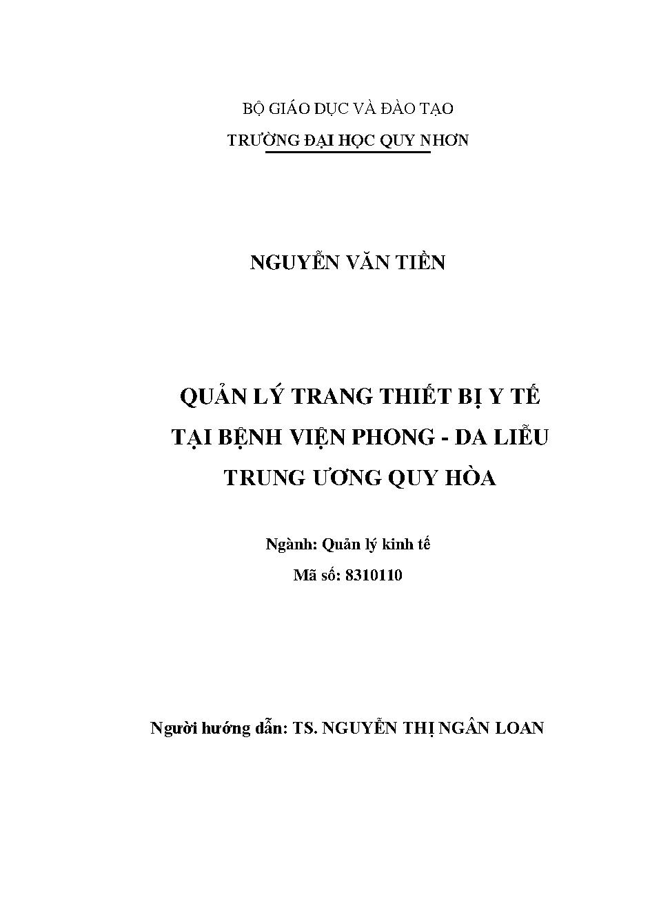 Quản lý trang thiết bị y tế tại bệnh viện phong - da liễu Trung Ương Quy Hòa