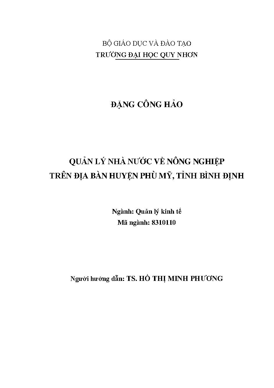 Quản lý nhà nước về nông nghiệp trên địa bàn huyện Phù Mỹ, tỉnh Bình Định