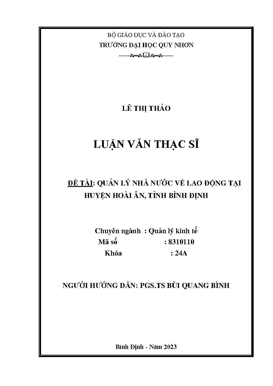 Quản lý nhà nước về lao động tại huyện Hoài Ân, tỉnh Bình Định