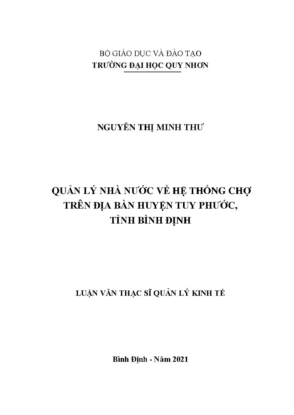 Quản lý nhà nước về hệ thống chợ trên địa bàn huyện Tuy Phước, tỉnh Bình Định