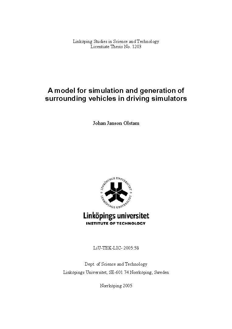 A model for simulation and generation of surrounding vehicles in sriving simulators