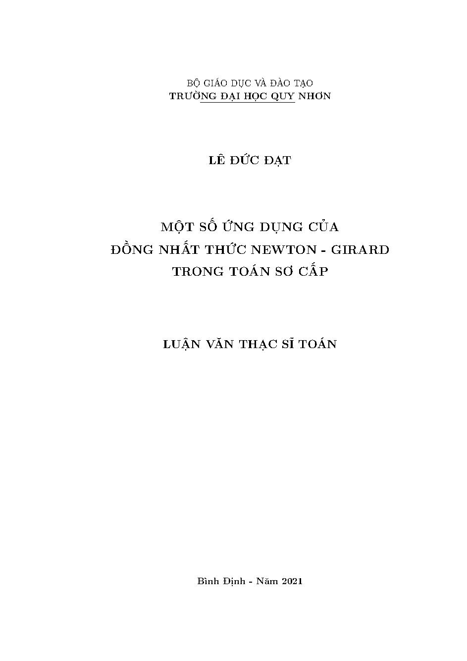 Một số ứng dụng của đồng nhất thức Newton-Girard trong toán sơ cấp