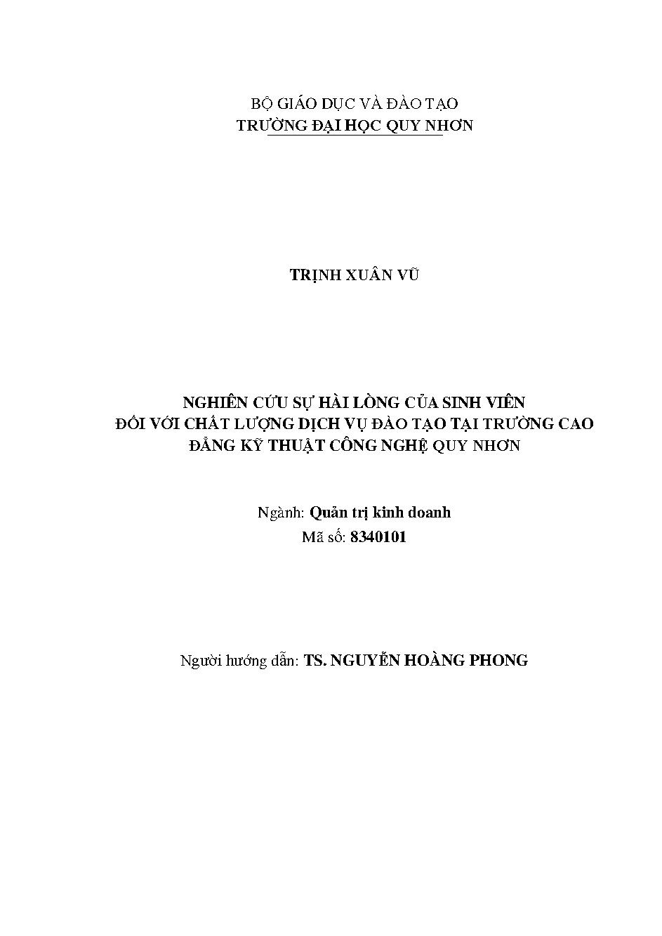 Nghiên cứu sự hài lòng của sinh viên đối với chất lượng dịch vụ đào tạo tại trường Cao đẳng Kỹ thuật Công nghệ Quy Nhơn