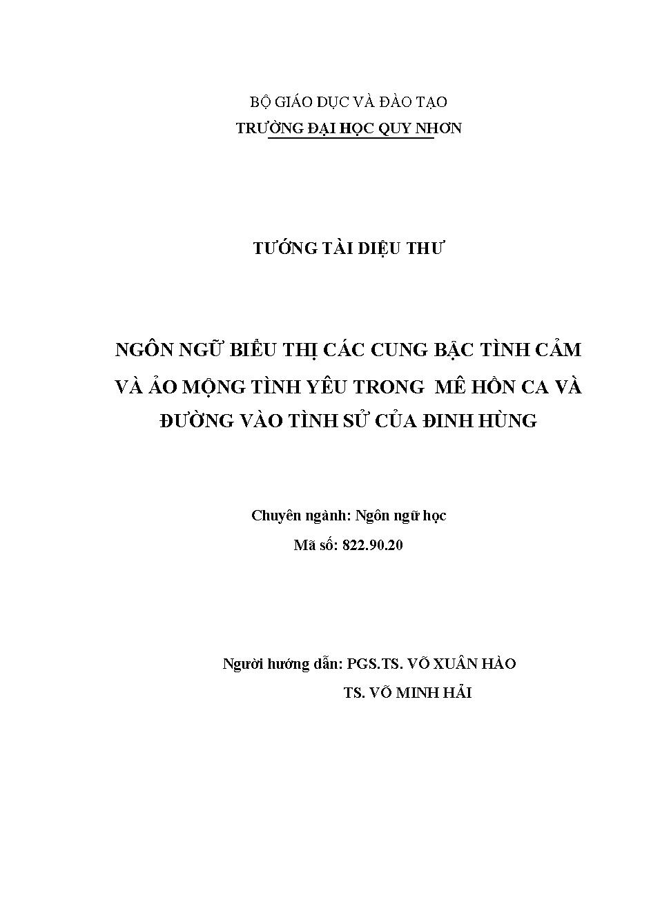 Ngôn ngữ biểu thị các cung bậc tình cảm và ảo mộng tình yêu trong mê hồn ca và đường vào tình sử của Đinh Hùng