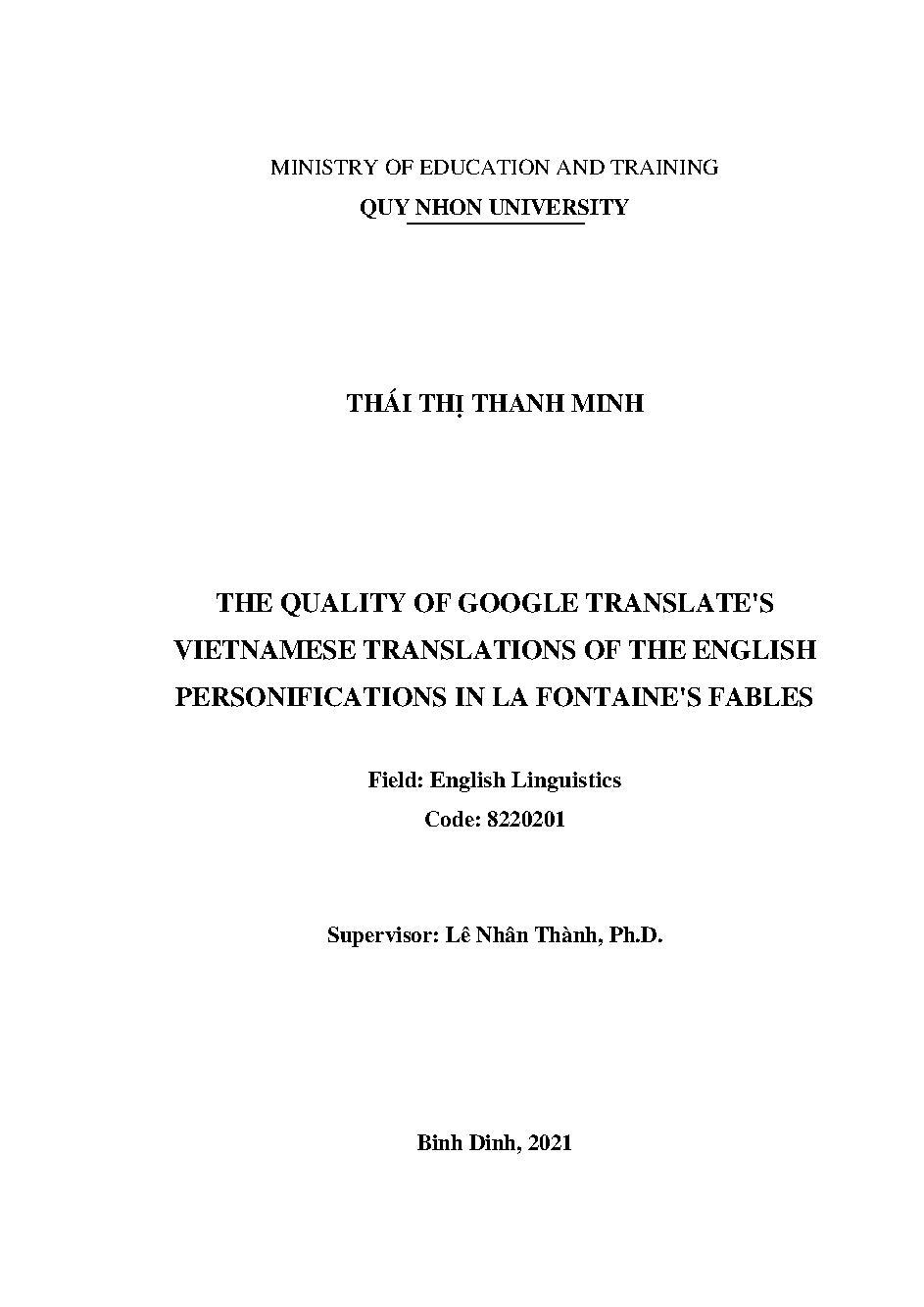 The quality of Google Translate's Vietnamese translations of the English personifications in "La Fontaine's Fables"
