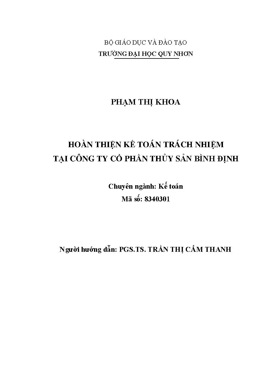 Hoàn thiện kế toán trách nhiệm tại công ty cổ phần thủy sản Bình Định