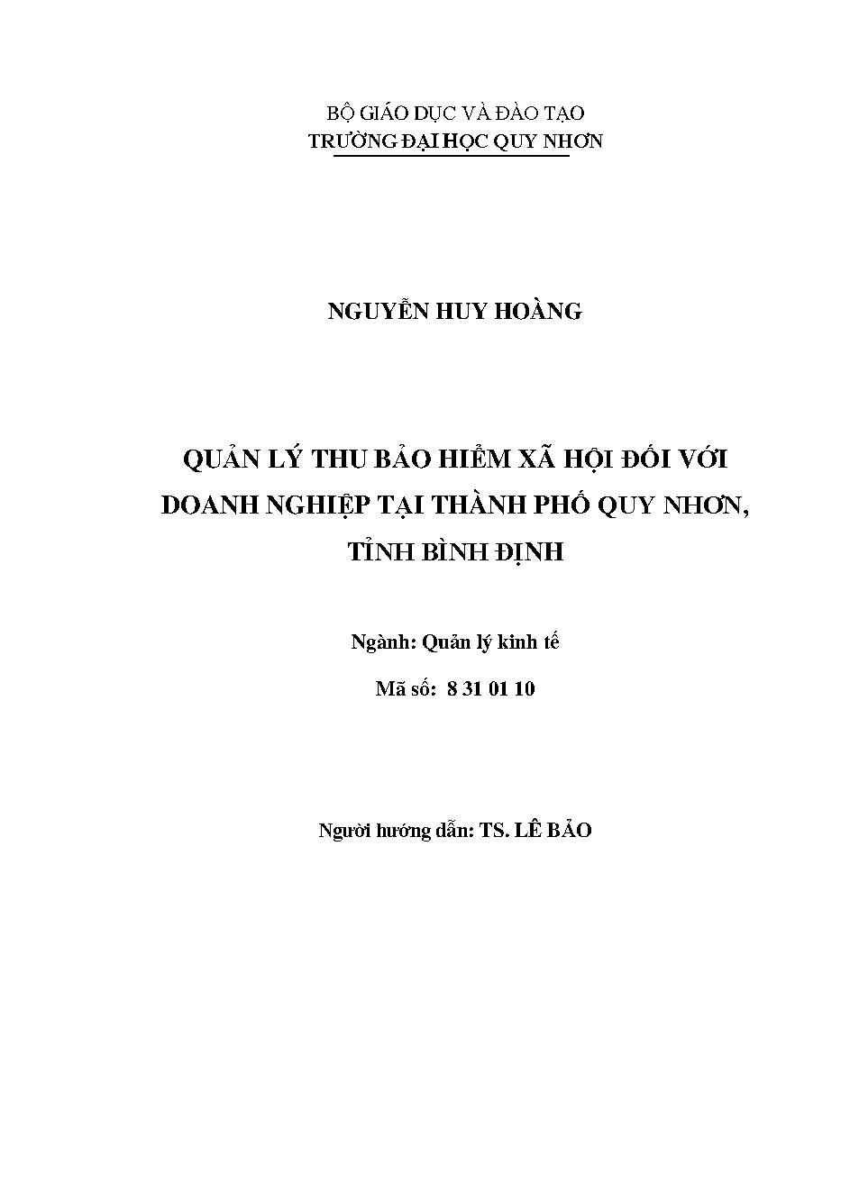 Quản lý thu bảo hiểm xã hội đối với doanh nghiệp tại thành phố Quy Nhơn, tỉnh Bình Định