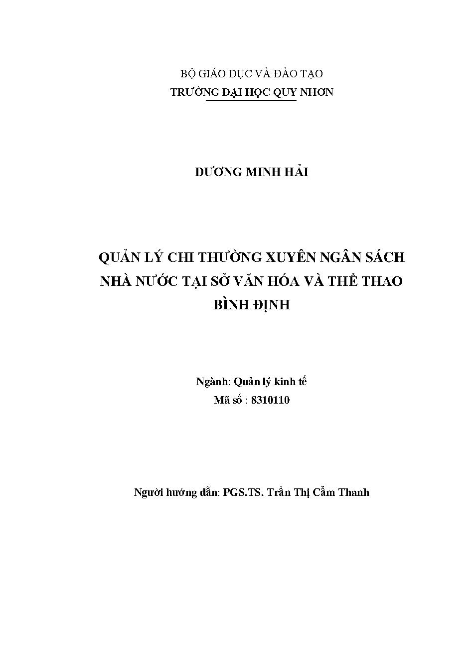 Quản lý chi thường xuyên ngân sách nhà nước tại sở văn hóa và thể thao Bình Định