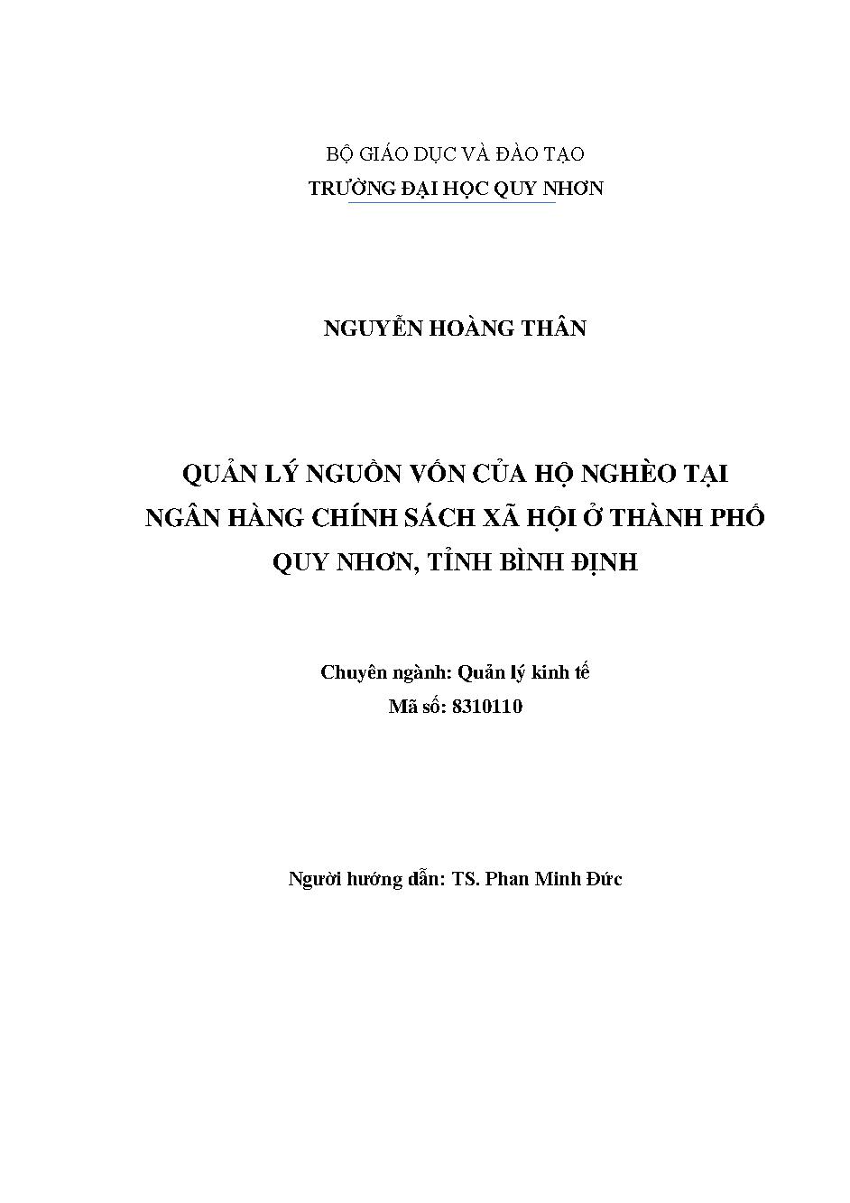 Quản lý nguồn vốn của hộ nghèo tại ngân hàng chính sách xã hội ở thành phố Quy Nhơn, tỉnh Bình Định