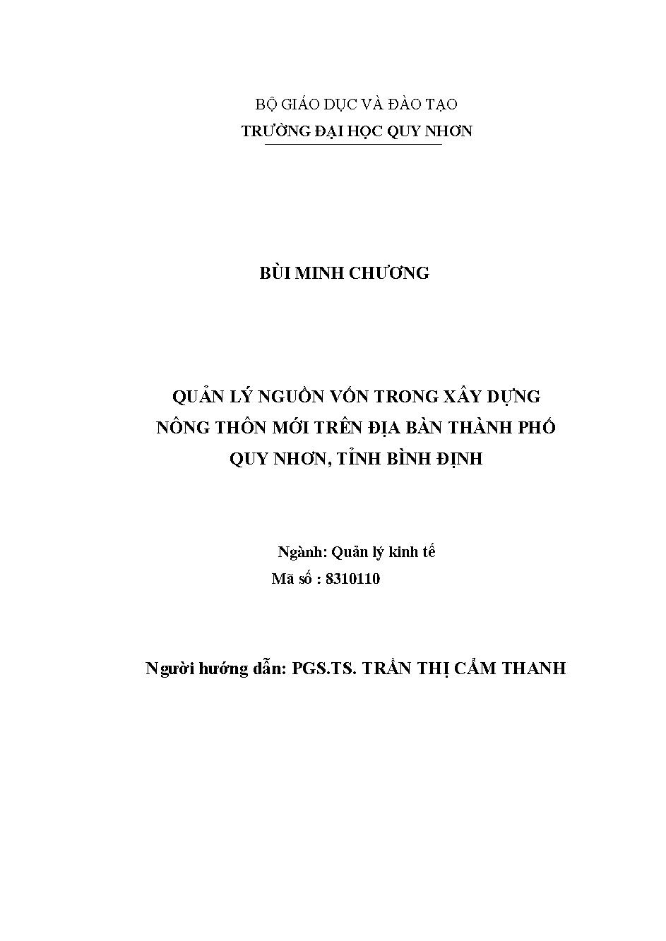 Quản lý nguồn vốn trong xây dựng nông thông mới trên địa bàn thành phố Quy Nhơn, tỉnh Bình Định