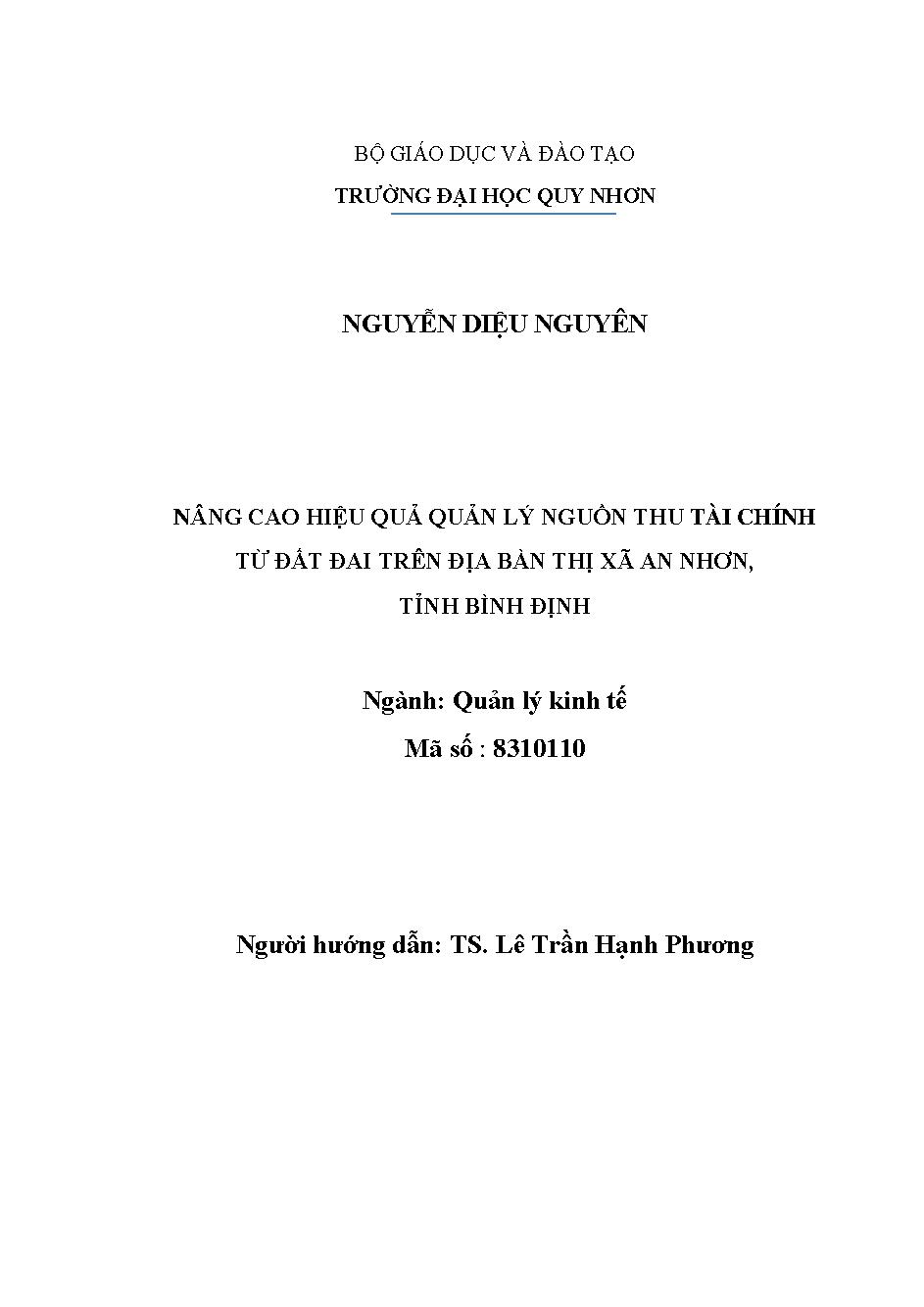 Nâng cao hiệu quả quản lý nguồn thu tài chính từ đất đai trên địa bàn thị xã An Nhơn, tỉnh Bình Định