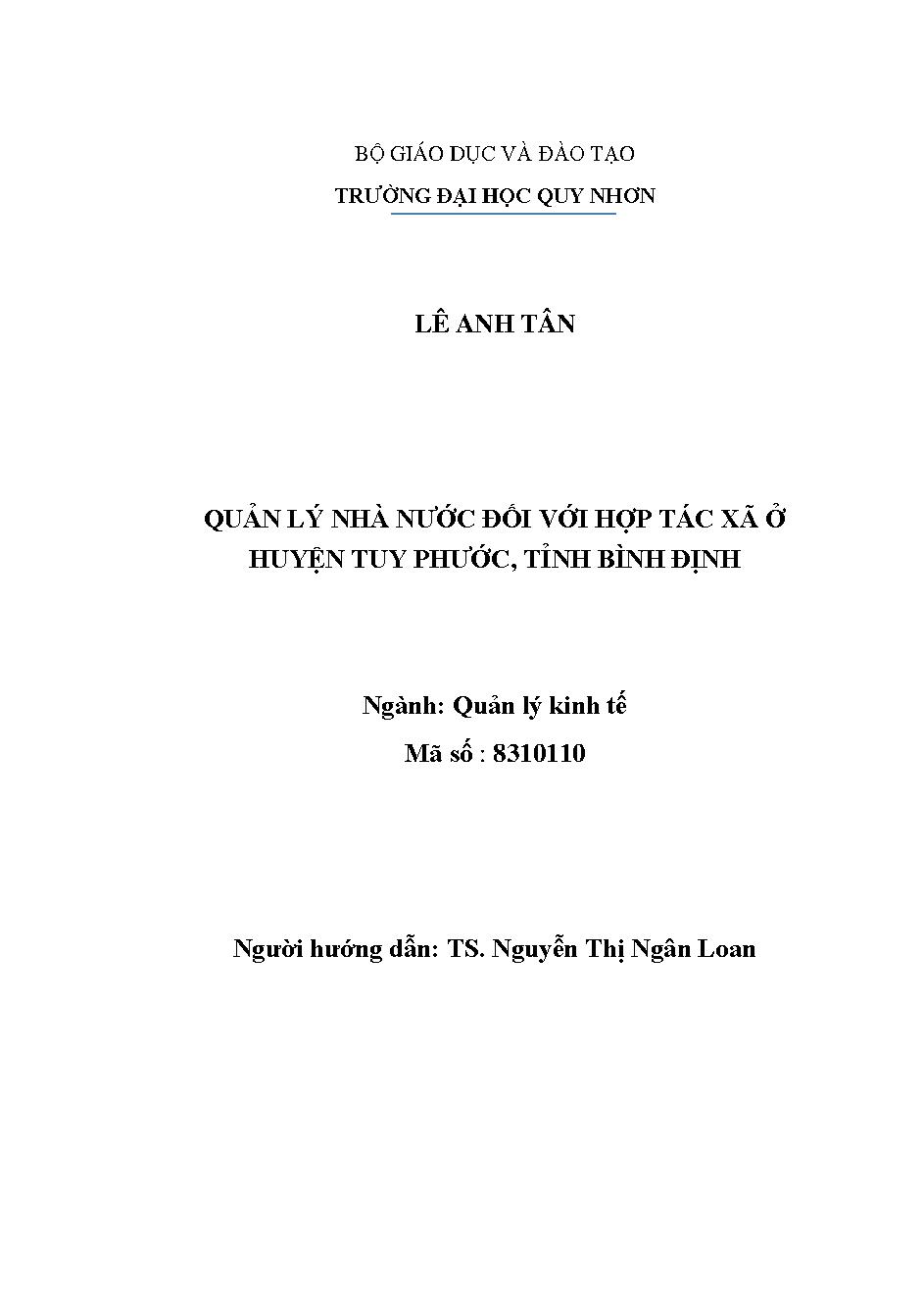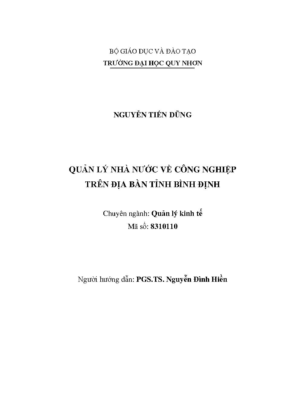 Quản lý nhà nước về công nghiệp trên địa bàn huyện Tuy Phước, tỉnh Bình Định