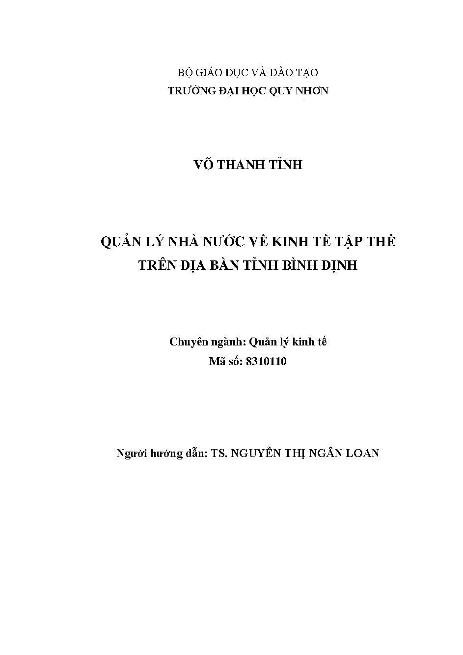 Quản lý nhà nước về kinh tế tập thể trên địa bàn tỉnh Bình Định