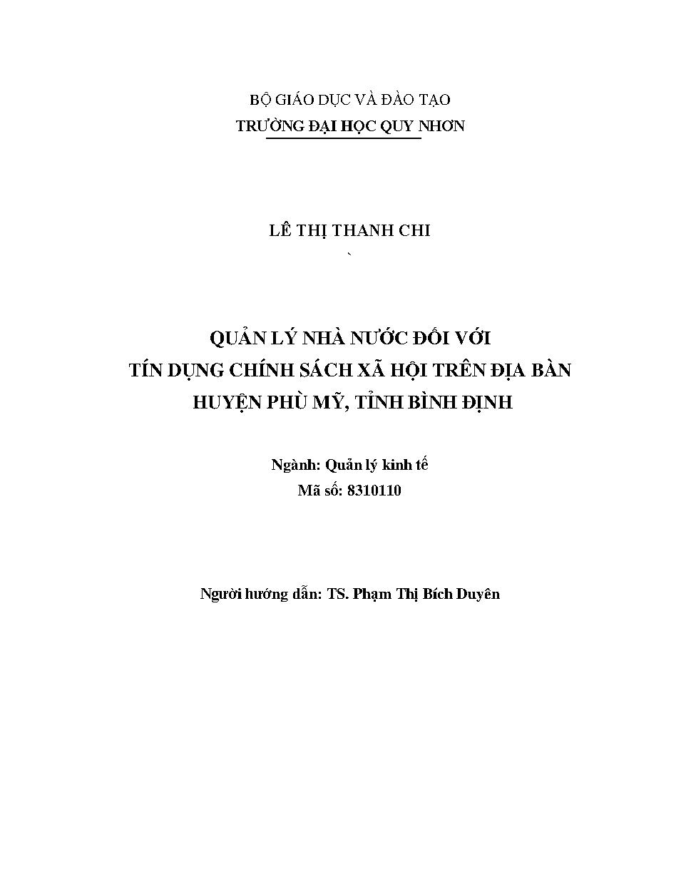 Quản lý nhà nước đối với tín dụng chính sách xã hội trên địa bàn huyện Phù Mỹ, tỉnh Bình Định
