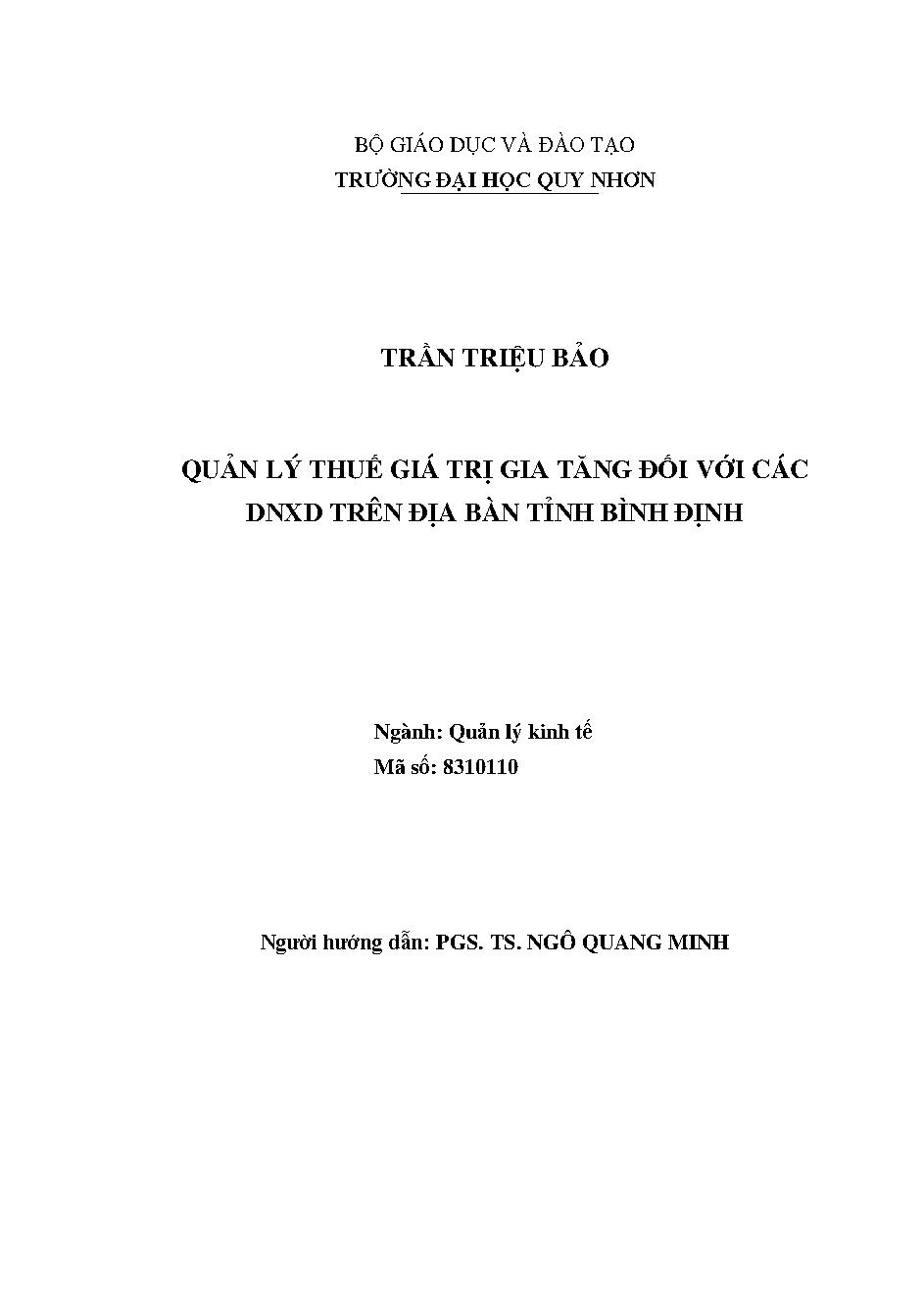 Quản lý thuế giá trị gia tăng đối với các DNXD trên địa bàn tỉnh Bình Định