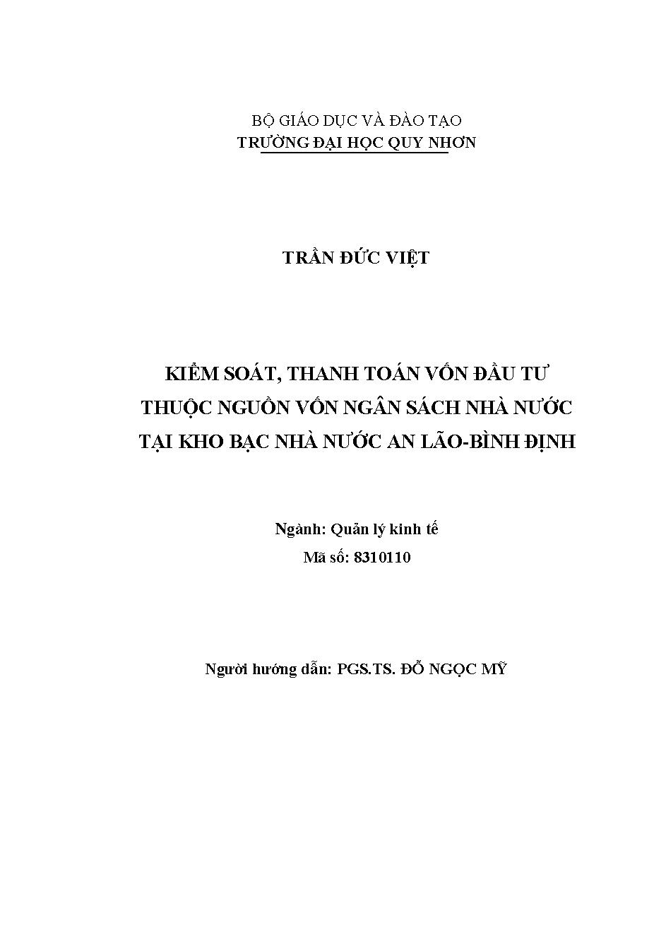 Kiểm soát thanh toán vốn đầu tư thuộc nguồn vốn ngân sách nhà nước tại Kho bạc Nhà nước An Lão, tỉnh Bình Định
