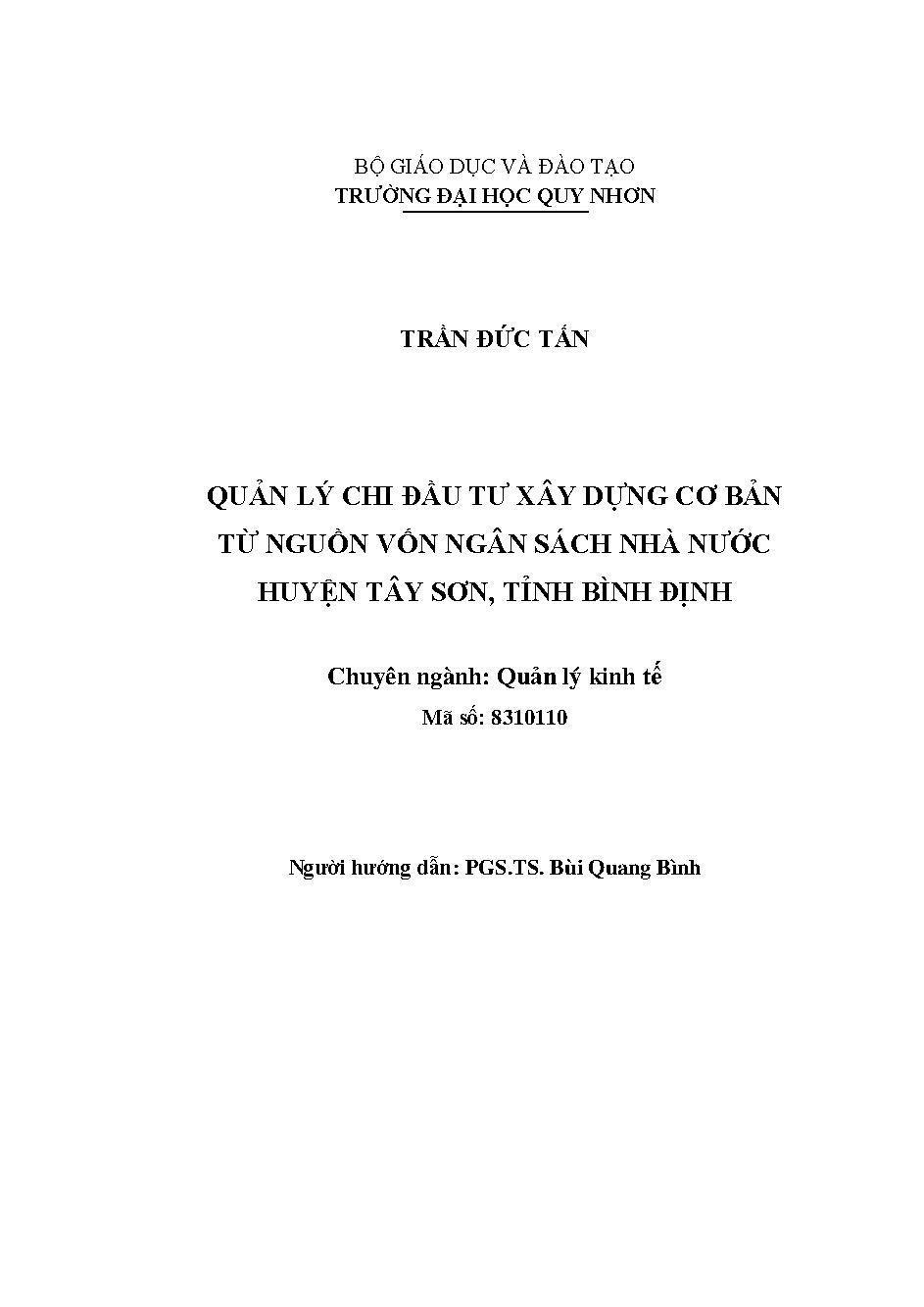 Quản lý chi đầu tư xây dựng cơ bản từ nguồn vốn ngân sách nhà nước huyện Tây Sơn, tỉnh Bình Định
