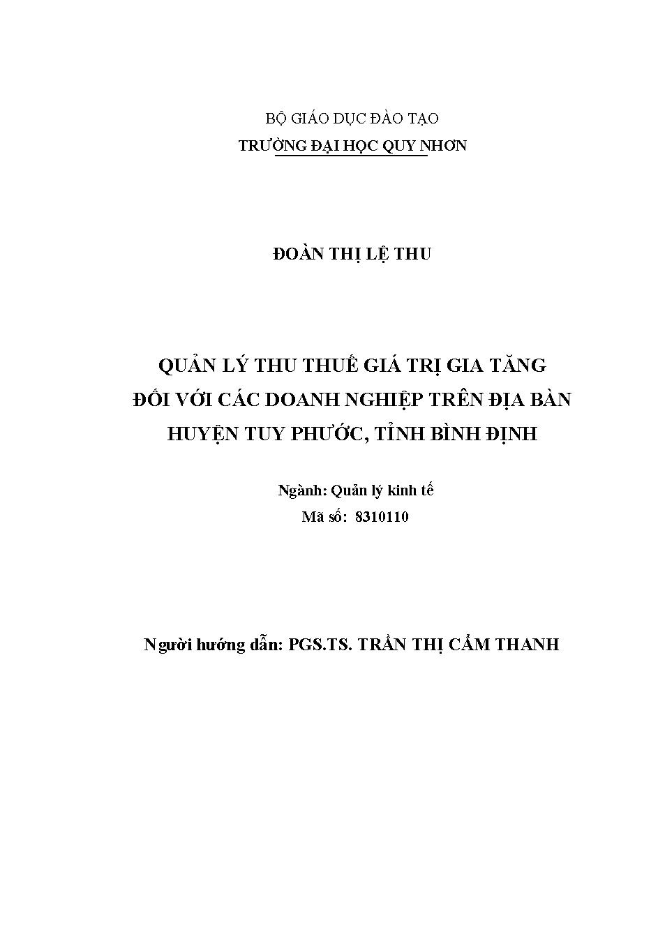 Quản lý thu thuế giá trị gia tăng đối với các doanh nghiệp trên địa bàn huyện Tuy Phước, tỉnh Bình Định