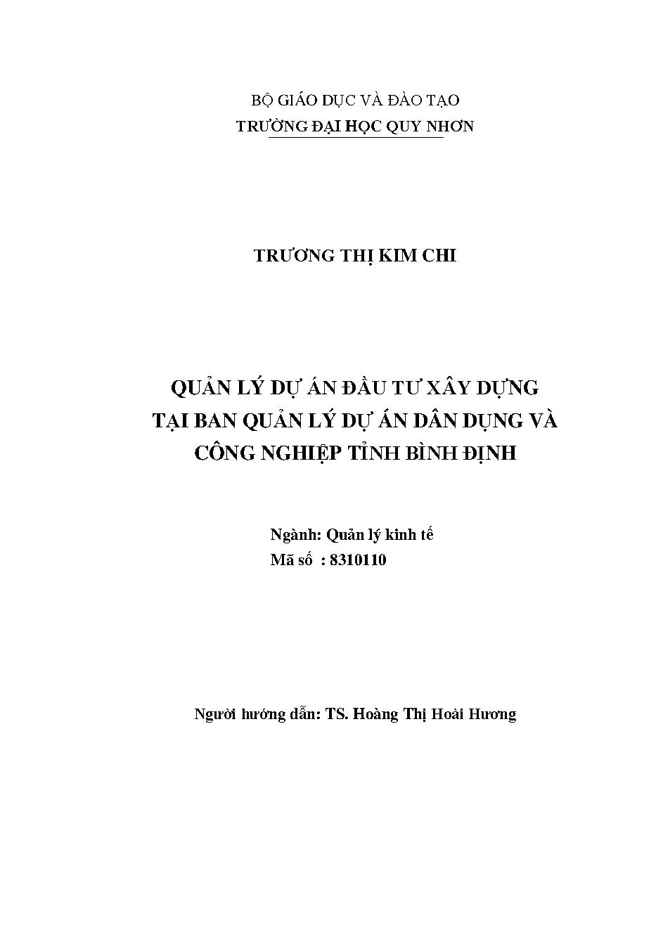 Quản lý dự án đầu tư xây dựng tại ban quản lý dự án dân dụng và công nghiệp tỉnh Bình Định