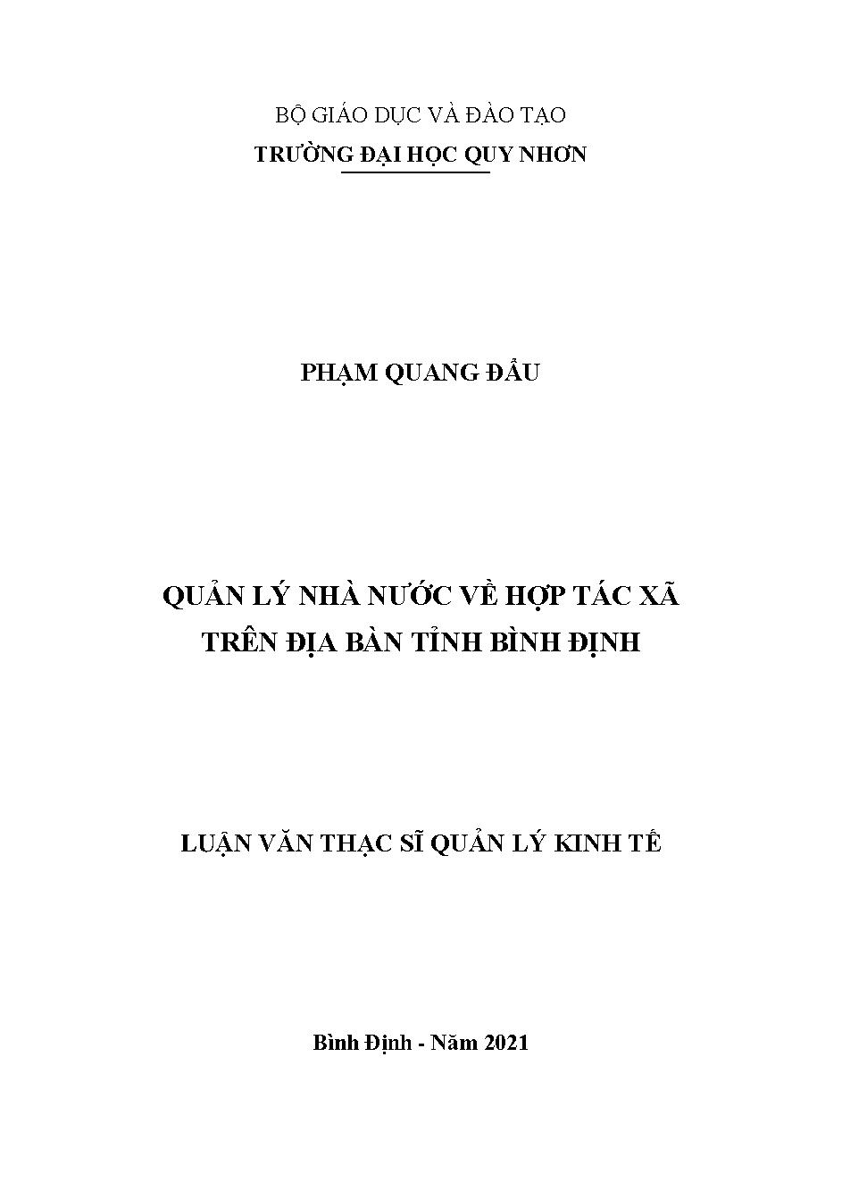 Quản lý nhà nước đối với hợp tác xã ở huyện Tuy Phước, tỉnh Bình Định