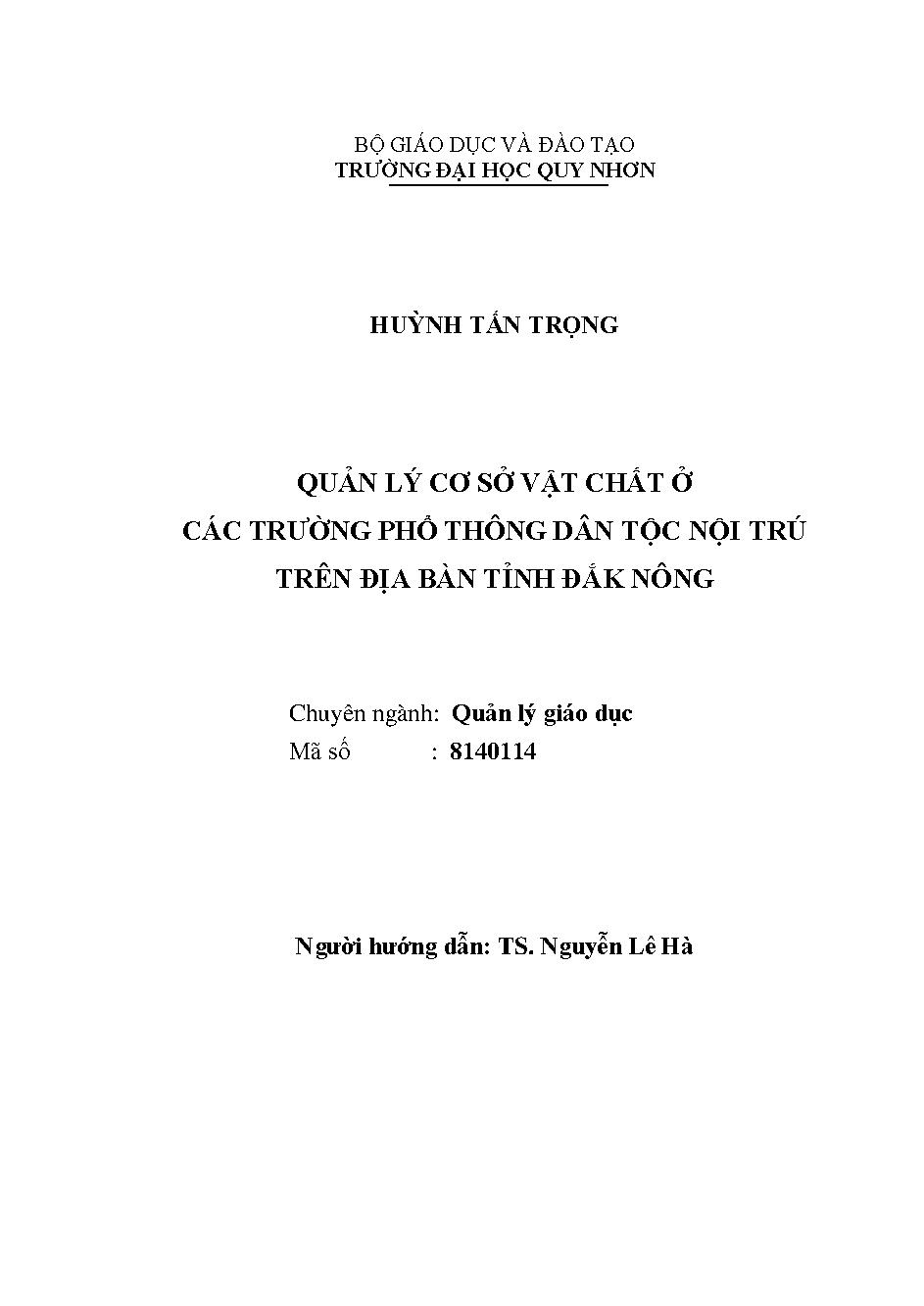 Quản lý cơ sở vật chất ở các trường phổ thông dân tộc nội trú trên địa bàn tỉnh Đắk Nông