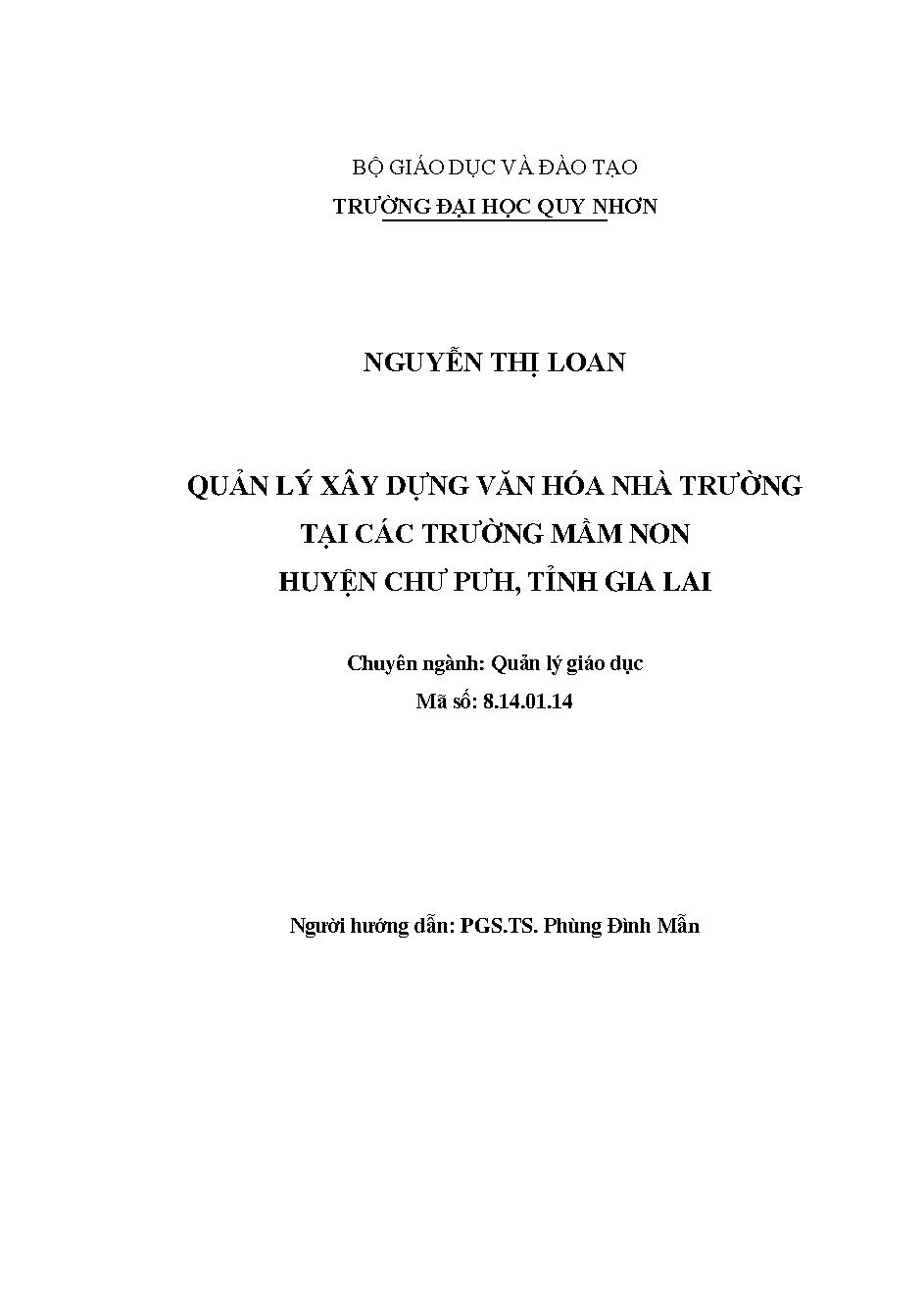 Quản lý xây dựng văn hóa nhà trường tại các trường mầm non huyện Chư Pưh, tỉnh Gia Lai