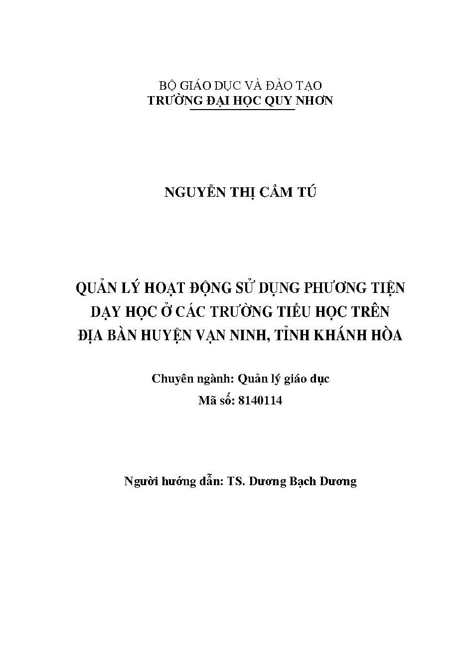 Quản lý hoạt động sử dụng phương tiện dạy học ở các trường tiểu học trên địa bàn huyện Vạn Ninh, tỉnh Khánh Hòa