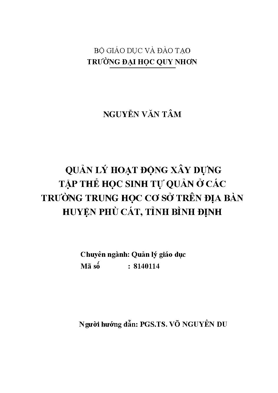 Quản hoạt động xây dựng tập thể học sinh tự quản ở các trường trung học cơ sở trên địa bàn huyện Phù Cát, tỉnh Bình Định