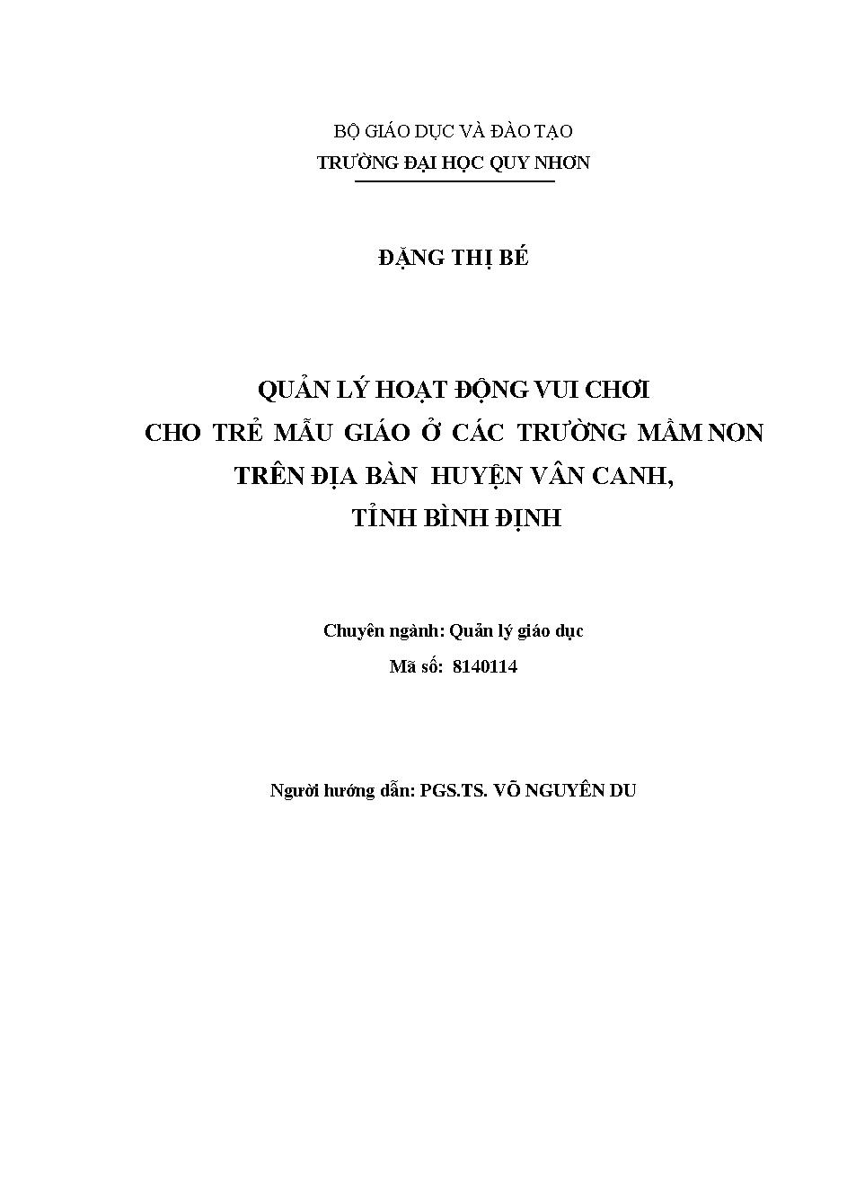 Quản lý hoạt động vui chơi cho trẻ mẫu giáo ở các trường mầm non trên địa bàn huyện Vân Canh, tỉnh Bình Định