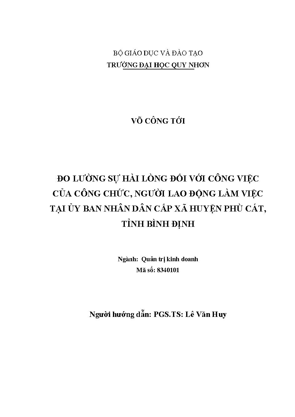 Đo lường sự hài lòng đối với công việc của công chức, người lao động làm việc tại Ủy ban nhân dân cấp xã huyện Phù Cát, tỉnh Bình Định