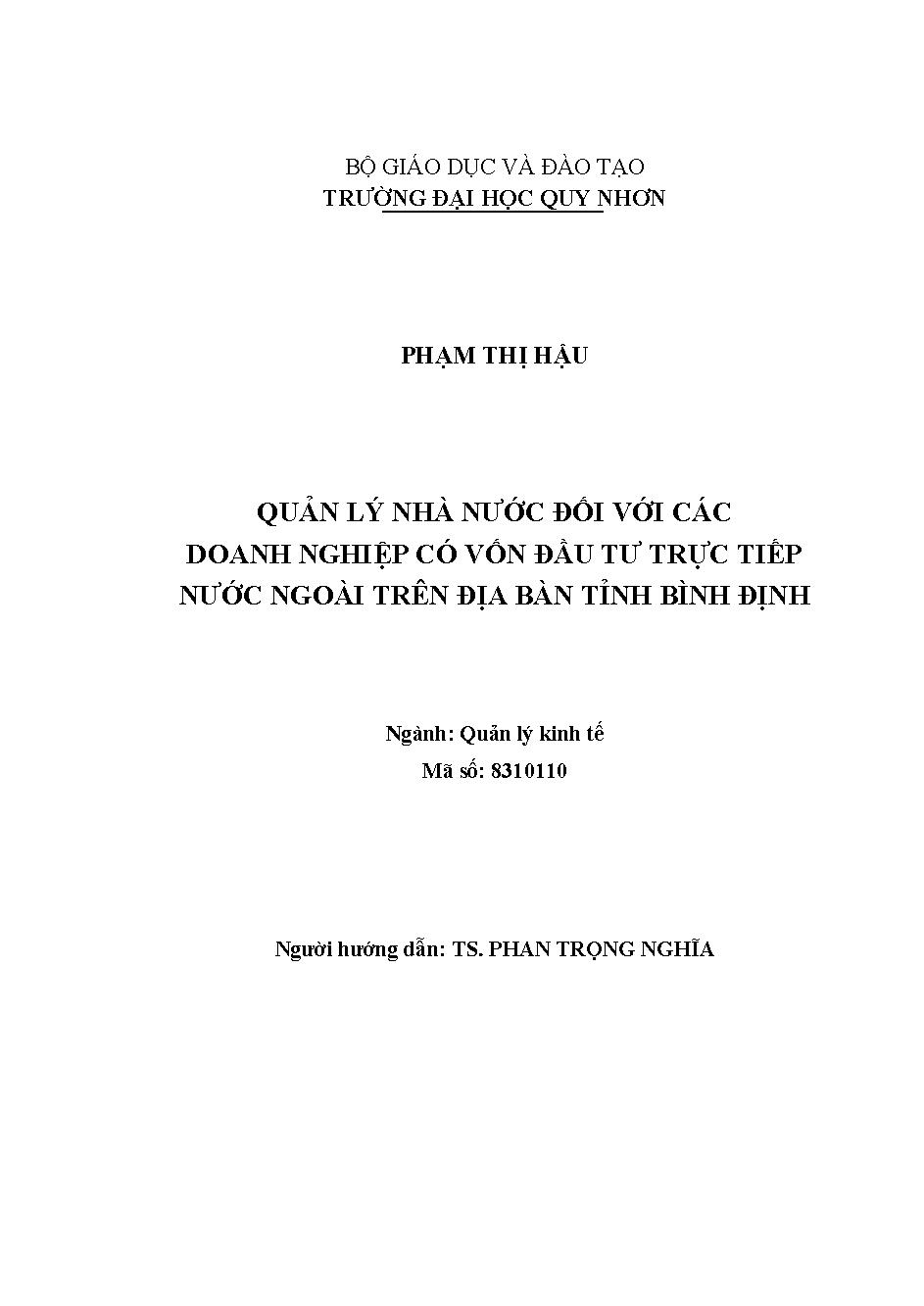 Quản lý nhà nước đối với các doanh nghiệp có vốn đầu tư trực tiếp nước ngoài trên địa bàn tỉnh Bình Định