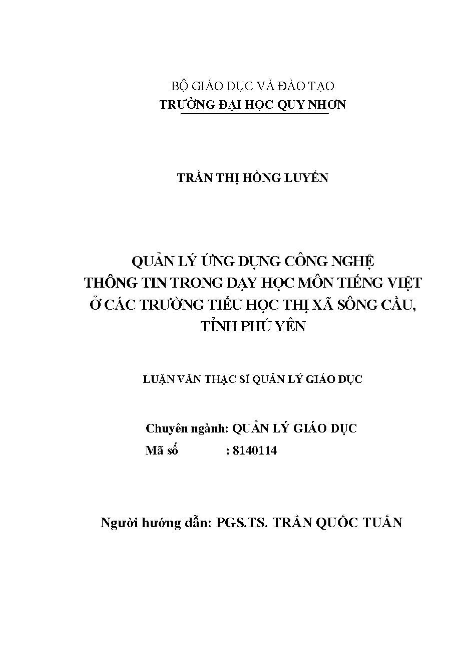 Quản lý ứng dụng công nghệ thông tin trong dạy học môn tiếng Việt ở các trường tiểu học thị xã Sông Cầu, tỉnh Phú Yên